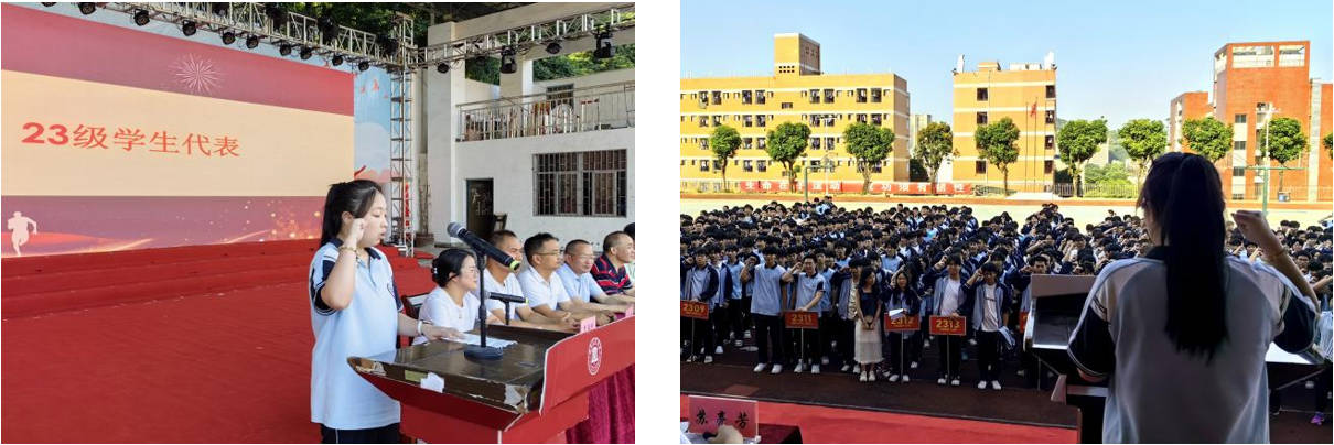 青春誓言,响彻云霄。林可颖同学代表23级学生作了表态发言,并带领全体23级学生庄严宣誓,表达了坚定备考、勇敢追梦的决心和信心。