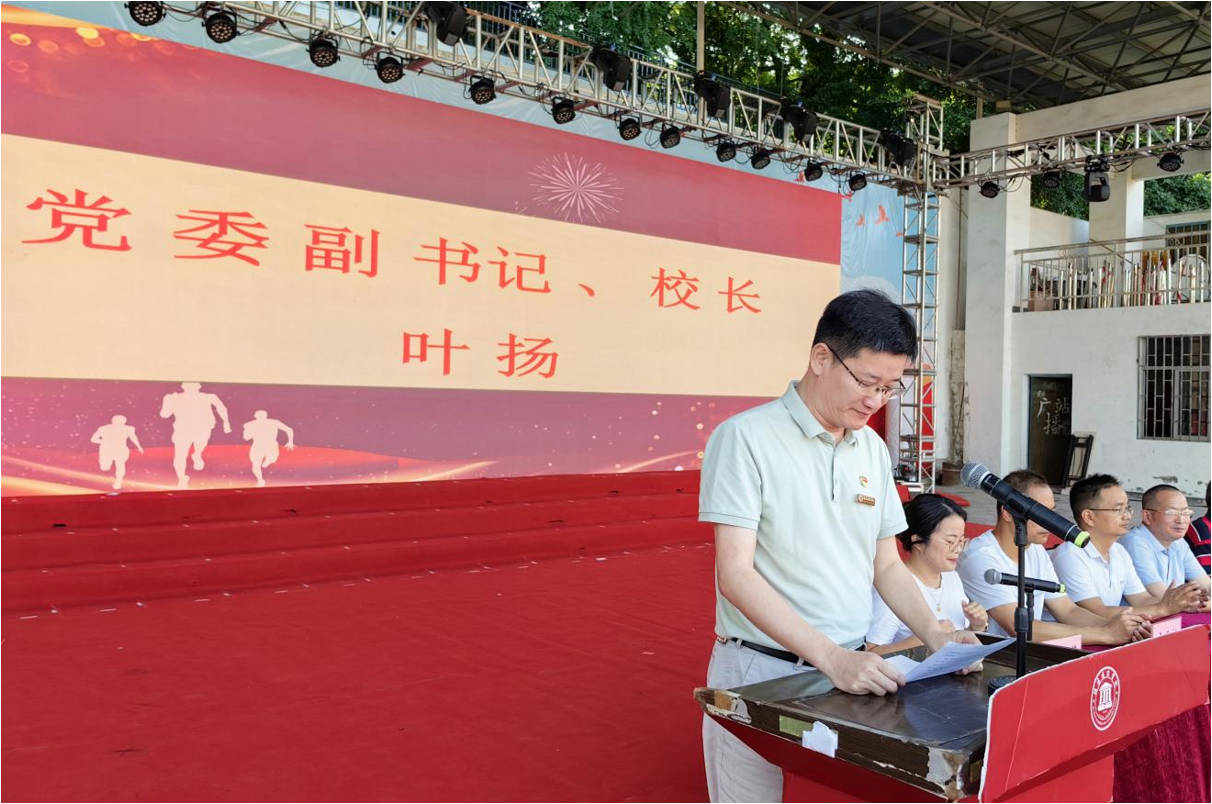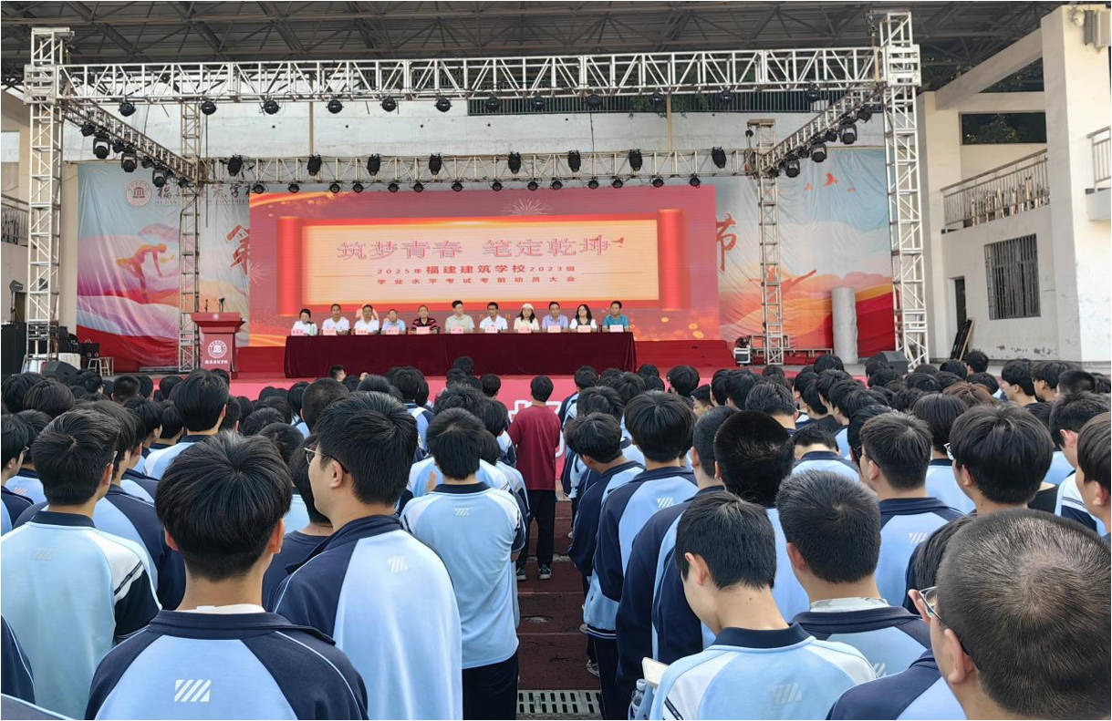 挥斥方遒斗志昂,建筑学子神飞扬。5月14日下午,我校2023级学业水平考试动员大会在校田径场隆重召开。校党委副书记、校长叶扬,党委委员、副校长蔡文镇以及教务部门负责人、学生科负责人、年段长、班主任代表、学生代表等参加大会。大会由教务科副科长苏亮芳主持。