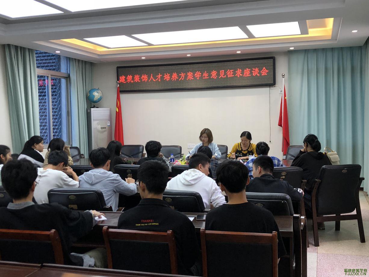 为了进一步落实立德树人根本任务,提升我校教学管理和教学实践能力,2019年10月23日下午,建筑装饰人才培养方案学生意见征求座谈会在我校二楼会议室召开。