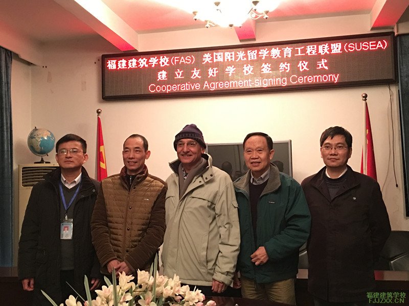 2016年1月16日,福建建筑学校与美国阳光留学教育工程联盟爱博伦中学“建立友好学校协议”签约仪式在我校二楼会议室举行。