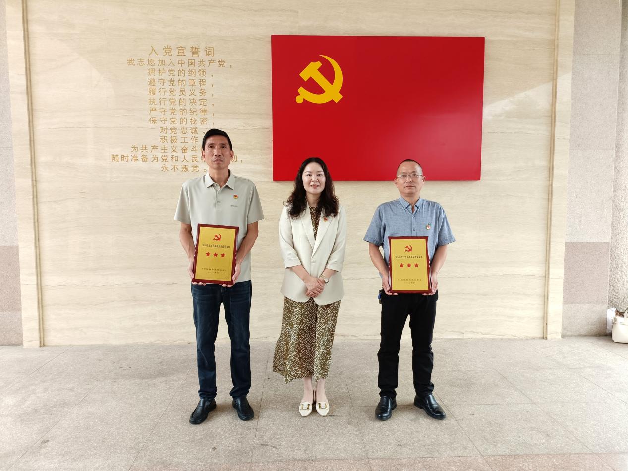 活动最后,全体党员面对党旗,重温入党誓词。校党委书记郑芳分别为第二党支部和第六党支部颁发“2024年厅直属机关三星级党支部”奖牌,肯定他们在支部党建工作方面取得的成绩,鼓励各支部以先进为榜样,进一步加强党组织建设,发挥好战斗堡垒作用。
