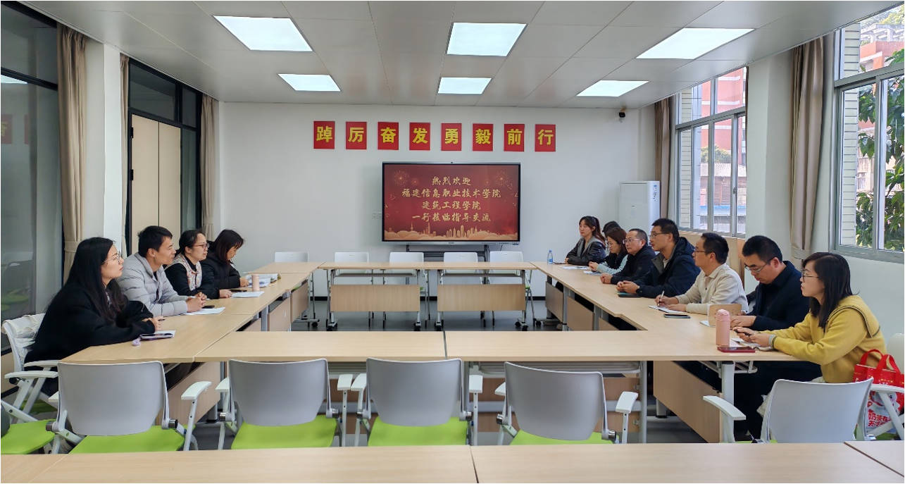 为深化校际合作、共商育人新路径,3月12日下午,福建信息职业技术学院建筑工程学院副院长陈琦一行四人到校开展专题调研交流。学校党委委员、副校长蔡文镇,相关科室负责人及专业骨干教师参加交流活动。
