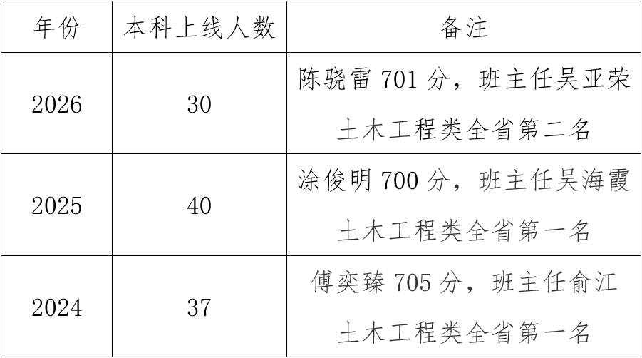 深耕育人结硕果,奋力拼搏传捷报。在学校领导统筹部署、全体师生凝心聚力、同心攻坚下,福建建筑学校在 2026 年福建省高职院校分类招生考试中再创佳绩:共有30名同学成功突破本科线,其中陈骁雷同学以701分的优异成绩,斩获全省土木工程类第二名。谨以此捷报,向所有奋力拼搏、不负韶华的建筑学子致以热烈祝贺!愿大家乘势而上、笃行致远,逐梦远航、再谱新篇!
