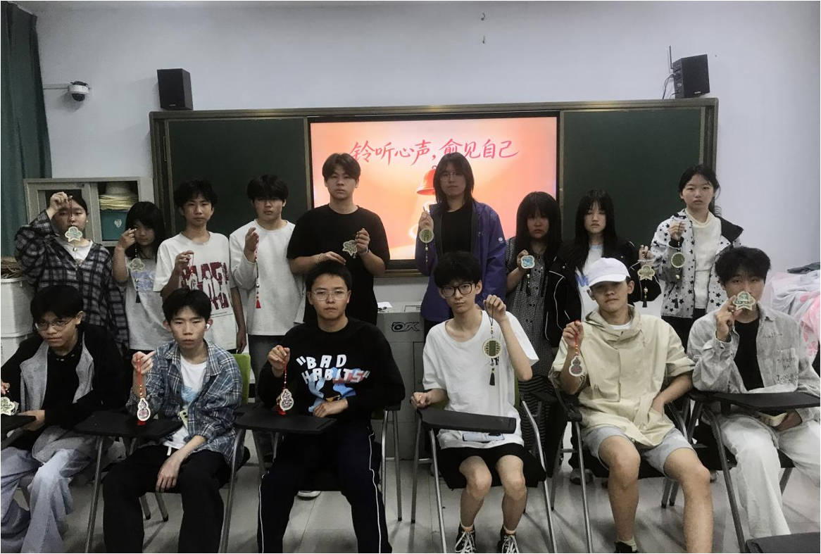 “铃听心声、愈见自己”活动则结合手工疗愈相关知识,向同学们普及正念手作理念,引导大家放下杂念、专注当下,在动手实践中舒缓焦虑、调节情绪。活动中,同学们充分发挥创意,精心设计、亲手制作专属风铃,每一处细节都承载着心中的期许与热爱。活动现场风铃轻鸣、暖意融融,阵阵清脆的铃声化作治愈人心的力量,传递着彼此的温暖与鼓励。