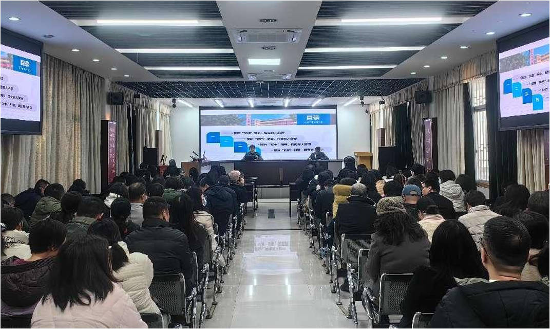 会上,党委副书记、校长叶扬对本学期的重点工作任务落实情况进行了总结汇报。一是聚焦“党建”核心,锚定育人航标。通过高水平党建引领和保障,学校实现党建与教育教学工作的深度融合,确保了全体教职工在思想上、政治上、行动上与党中央保持高度一致。二是深耕“特色”发展,完善育人体系。学校以教研竞赛为载体,深入推进教学改革,取得了丰硕成果,进一步提升了学校的办学水平和社会影响力。三是践行“实干”精神,优化育人管理。学校重视日常管理、财务管理和基础设施建设,通过完善各项管理制度,提高队伍活力,提升工作效率,为稳定发展提供了有力保障。四是激发“创新”元素,凝聚育人合力。学校从招生工作创新、家校共育模式探索、多元校园活动建设、心理健康教育强化、学生奖助政策落实等多方面展开育人工作,为学生成长创造良好环境。