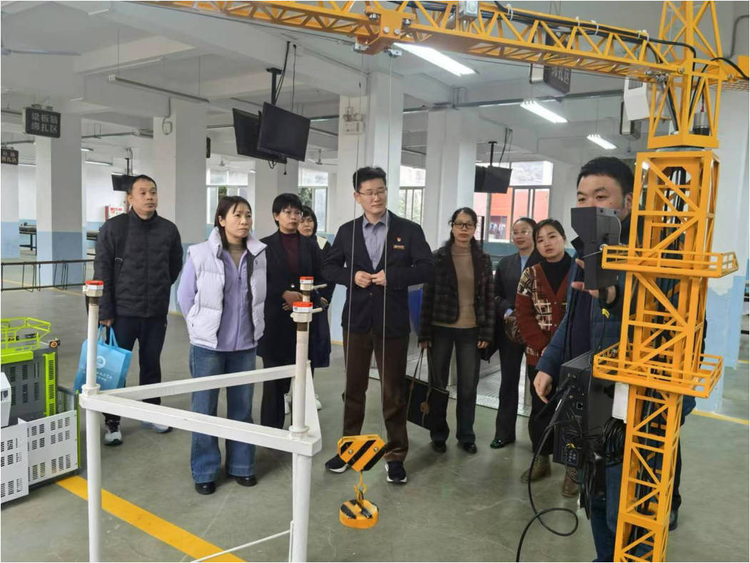 我校建筑专业教学部主任林玉章、副主任谢晖,向参访来宾重点介绍了建筑仿真实训室、钢筋工程实训室、建筑装饰理实一体化实训室及智慧工地实训室,充分展现了我校在专业实训方面的先进设施与教学理念。