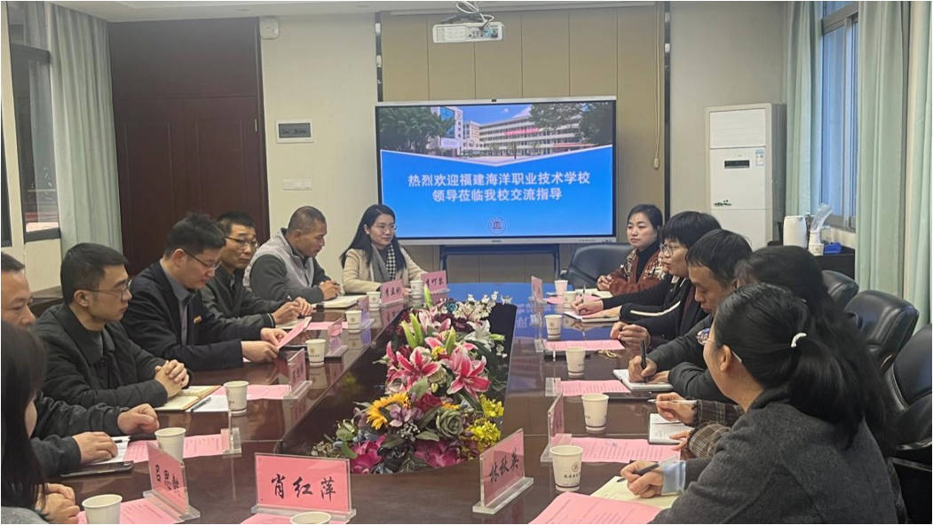 12月26日下午,福建海洋职业技术学校副校长陈佩君一行六人到访我校,就班主任工作室建设及技能鉴定站建设工作开展交流研讨。我校党委副书记、校长叶扬,办公室主任林修财,培训中心主任陈旭锋等全程陪同。