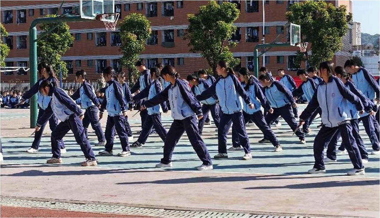 大会在庄严的国歌声中拉开帷幕,军训营长向叶扬校长报告完毕后,全场肃立,升国旗,奏国歌。随后,2024级的先进班级依次展示了精彩的走步队列、匕首操、军体拳、手语操《精忠报国》以及战术与急救表演。军姿潇洒展荣光,尽显吾辈壮志昂。同学们精神抖擞,步伐整齐,动作有力,眼神中透露出坚毅与斗志,充分展现了他们在军训中学到的技能和昂扬向上的精神风貌。