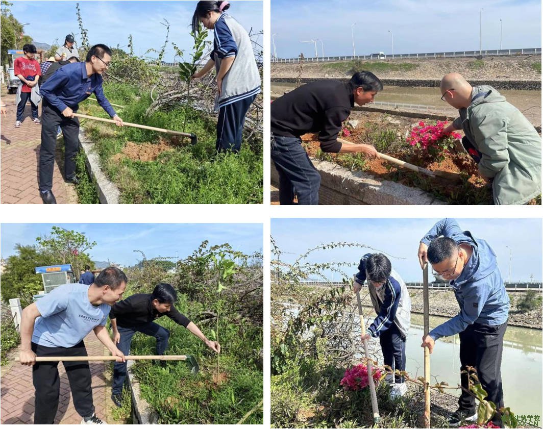 春风拂绿,万象更新。活动中,蔡文镇副校长进行了环保教育宣讲,要求党员及青年团员要牢固树立和践行绿水青山就是金山银山的理念。随后,志愿者们分成若干支小队伍,在“中麻渔村”长堤上,开展了热火朝天的植树活动。志愿者们手持铁锹、水桶等工具,挥锹挖坑、扶树培土、踩实浇水,分工协作,配合默契。经过两个多小时的劳动,一棵棵树苗迎风而立,焕发出春的生机和活力。