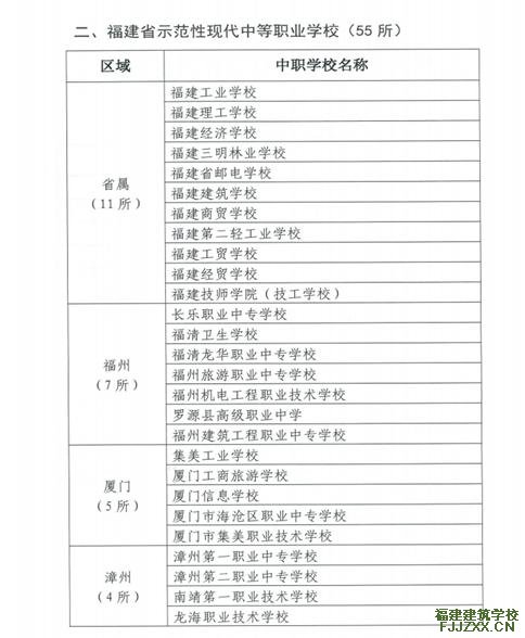 近日,福建省教育厅发布了《福建省教育厅 福建省财政厅关于公布福建省示范性现代职业院校名单的通知》,共计19所高职院校和55所中职院校通过项目建设终期验收,我校光荣上榜。