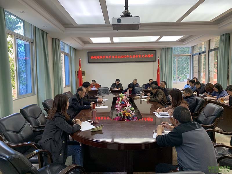 会上,校党办主任丘永发首先传达了2月22日在福州召开的2019年全省教育工作大会精神,福建省委书记、省委教育工作领导小组组长于伟国在大会上强调要从培养高质量的学生、建设高素质专业化的教师队伍、办好公平而有质量的基础教育、推进教育领域综合改革等四个方面推进教育高质量发展。同时,于伟国同志还要求,要加强党对教育工作的全面领导、为教育事业发展提供坚强保障。