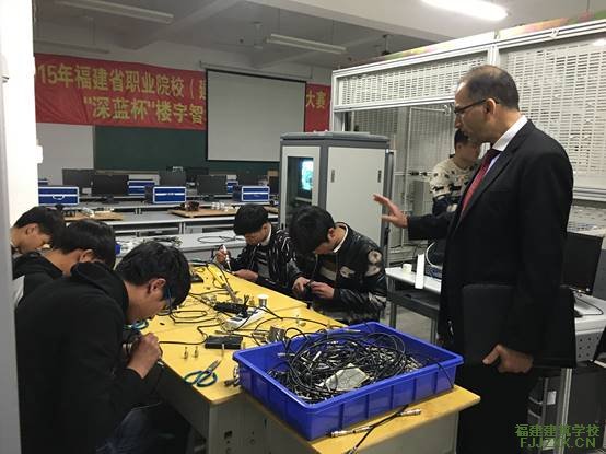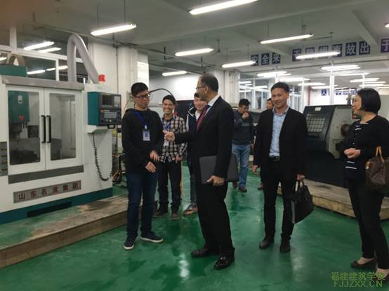 愉快的交流后,林启豫校长带领asif教授等人一同参观我校的实训中心,参观过程中正巧遇见我校参加技能竞赛的同学们在赛前训练,Asif教授看到他们的技艺竖起了大拇指,同时对我校的实训设备、教学环境给予了充分肯定。