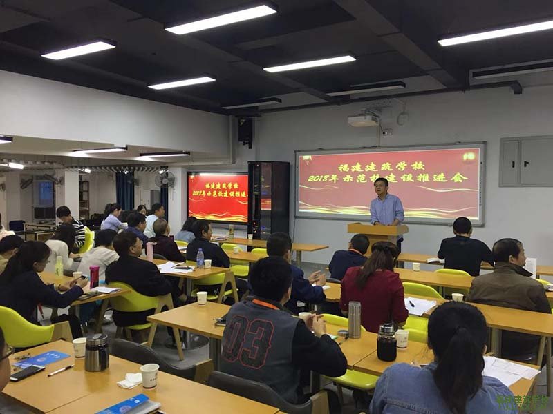 2018年10月29日-30日,福建建筑学校2018年示范校建设推进会在校图书馆多功能厅召开。会议由许育龙副校长主持,学校领导、全体中层干部及各科室材料员出席了会议。