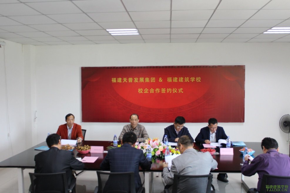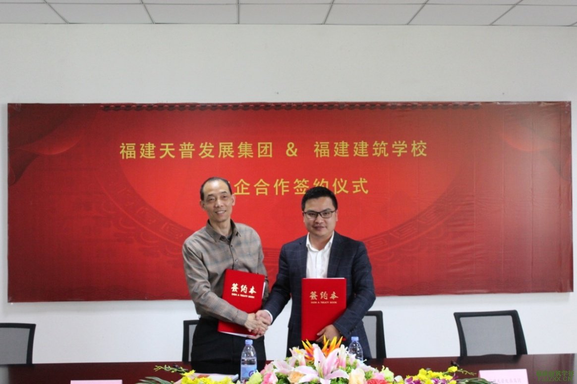 2018年4月18日上午,福建建筑学校与福建天普发展集团在福州海西高新区天普大厦举行了校企合作签约仪式,福建建筑学校党委书记、校长林启豫与福建天普发展集团总经理张明灿正式签署了《校企合作框架协议》,主要目标是培养适应建筑产业工业化、信息化的技术技能型人才,特别是福建省建筑产业急需的装配式建筑技术人才。