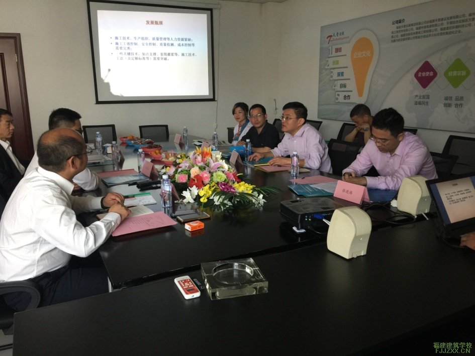 会议由福建天普发展集团洪峰副总主持,首先他对我校代表的到来表示热烈的欢迎,接着张明灿总经理介绍了集团情况,张国栋副总、李总工分别介绍装配式建筑趋势、政策、建筑装配式技术人才需求及企校合作框架。随后,我校许育龙副校长介绍了学校的基本情况,对“建筑装配式技术人才校企协同育人模式”进行了要求,希望双方在合作形式上多样化,从师资培养学生实习实践、双方资源优势共享等方面进行合作。土木工程教学部教师从专业角度对“建筑装配式技术人才校企协同育人模式”的必要性及可行性方面阐述了意见,共同探讨建筑装配式技术人才校企协同育人模式,招生就业科从校企双方实现资源共享、学生就业对接等问题进行交流,探索有效解决装配式建筑技术人才需求的途径。