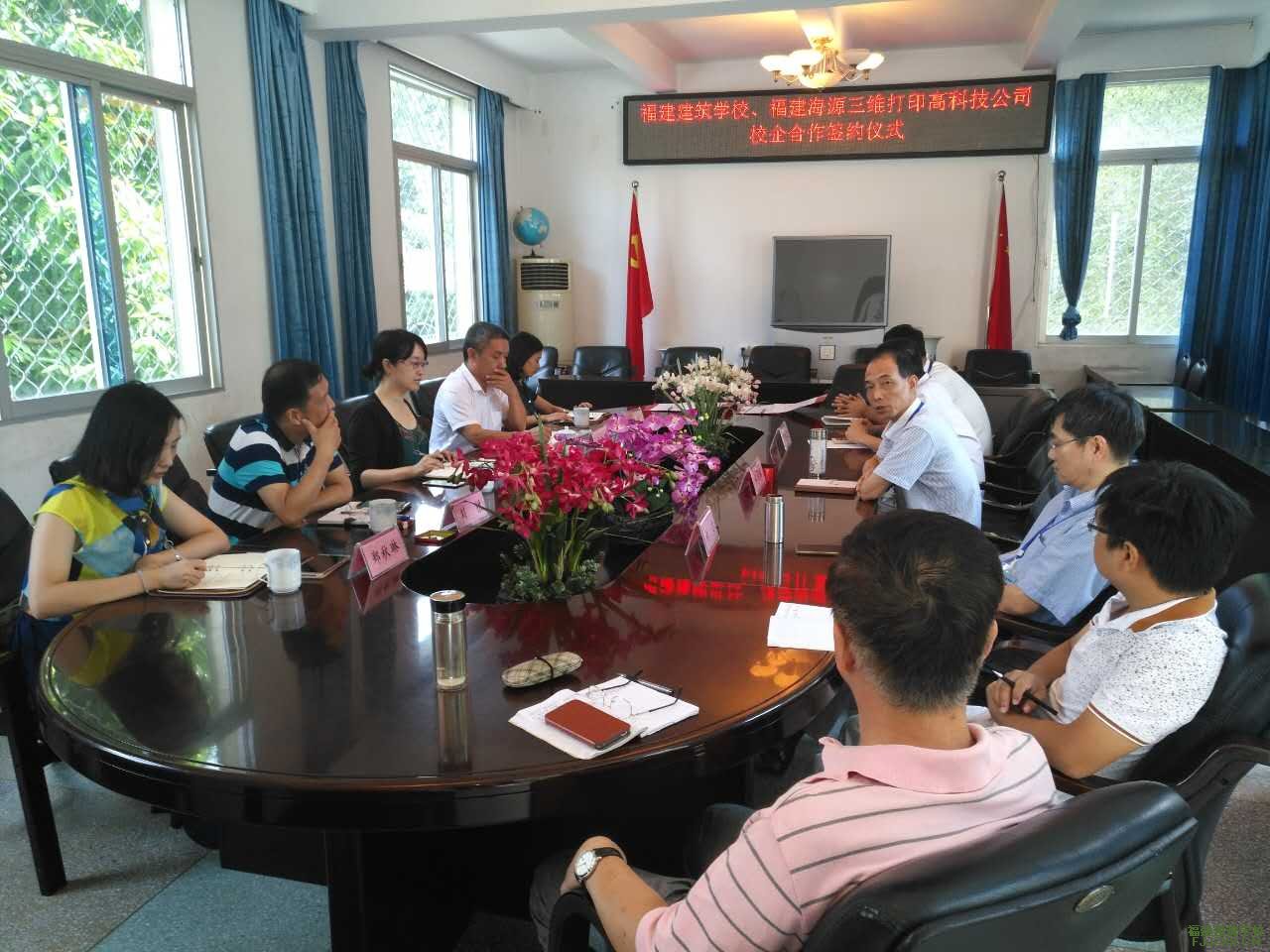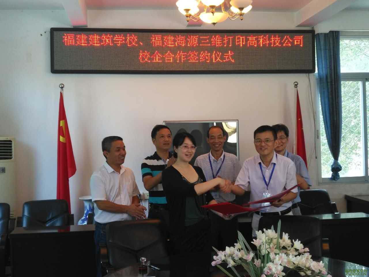 校企合作是一种以市场和社会就业需求为导向的教育模式,是学校和企业双方共同参与人才培养的过程,是培养高素质技能人才的一种有效途径,也是深化产学研合作教育的重要载体。为了加快福建省示范性现代职业院校建设,福建建筑学校在前期调研及洽谈的基础上,于2016年9月底与福建海源三维打印高科技有限公司(深圳上市公司“海源机械”子公司,以下简称“海源公司”)达成校企合作意向,并在福建建筑学校会议室举行了双方的签约仪式和项目对接。双方还就企业人才需求的类型和要求、培养模式、学生实习、资源共享等方面进行了座谈交流。