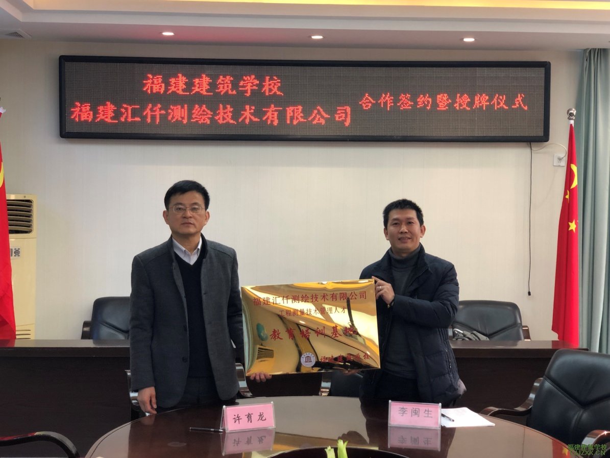 为了深入贯彻落实福建省关于加快发展现代职业教育的文件精神,进一步加强校企合作,探索建立校企合作协同育人机制。2019年1月18日上午,福建建筑学校与福建汇仟测绘技术有限公司在校二楼会议室举行了校企合作签约仪式。