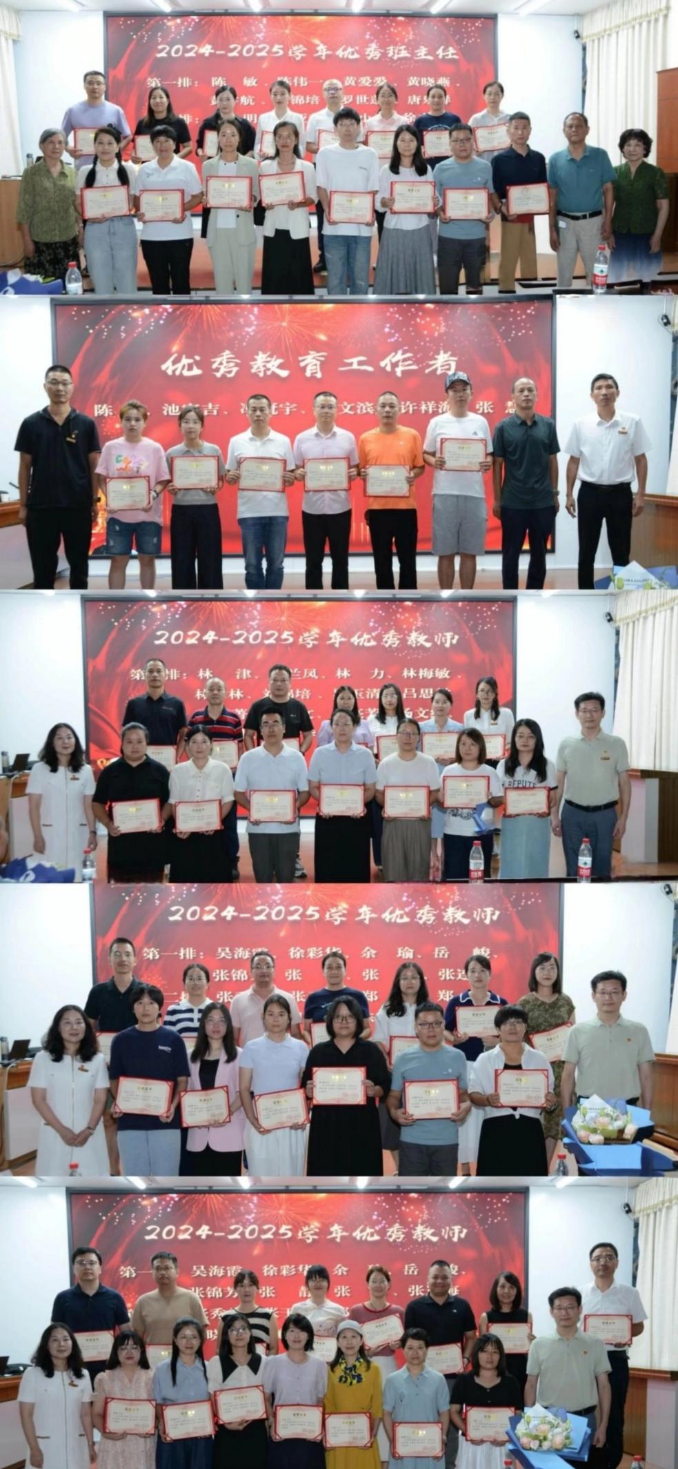 校党委副书记、校长叶扬宣读了《关于表彰2024-2025学年优秀教师、优秀教育工作者和优秀班主任的决定》。校领导和离退休老同志代表为获得2024-2025学年校优秀教师、优秀教育工作者、优秀班主任的教师颁发证书。这既是对优秀教师的肯定,也凝聚着全体教职工向榜样学习的决心。