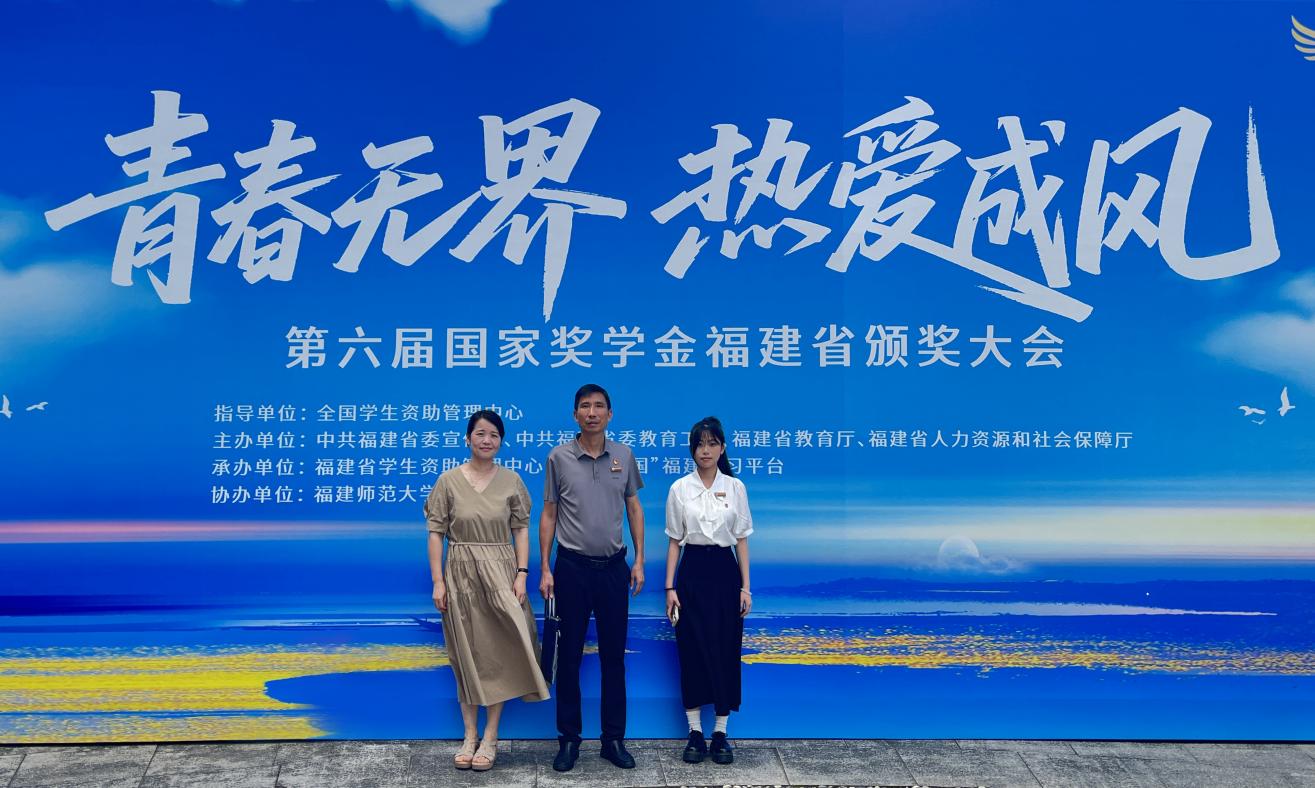 6月11日,“青春无界 热爱成风”第六届国家奖学金福建省颁奖大会在福建师范大学旗山校区举行。福建建筑学校党委委员、副校长林修财带队参会,学校2022级药品经营与管理专业学生陈靖雯作为国家奖学金获得者、中职教育优秀代表受邀参会。