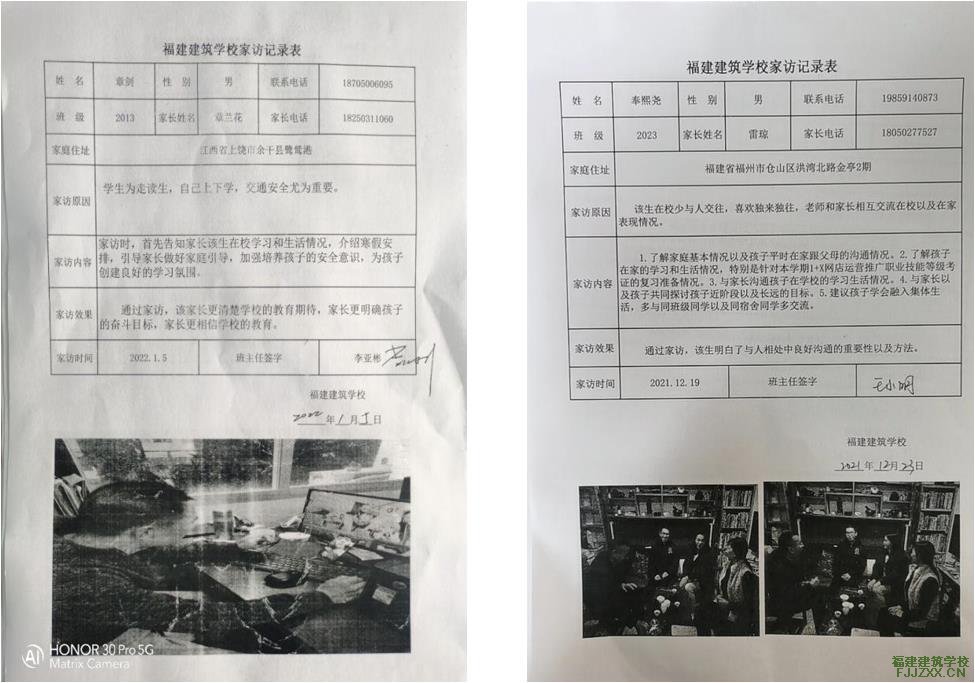 ▲ 福建建筑学校家访记录表
