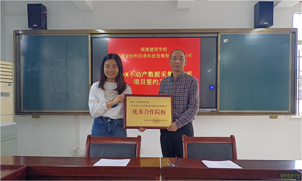 5月19日,我校与福建金创利信息科技发展有限公司围绕深化校企合作召开座谈会,学校党委书记、校长林启豫出席会议,双方围绕推进岗课赛证育人机制展开交流,并签订1+X不动产数据采集与建库职业技能等级证书考核协议,举办2021年度优秀合作院校授牌仪式。