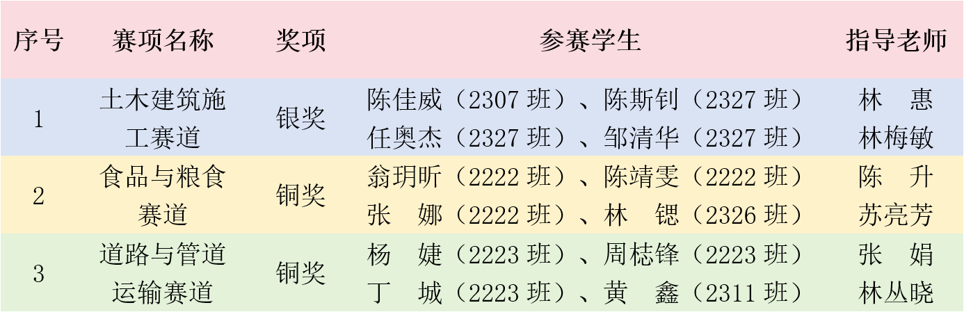 林惠、林梅敏老师指导的《土木建筑施工赛道》荣获银奖