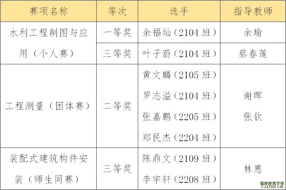 2024年度福建省职业院校技能大赛我校建筑专业教学部获奖喜报