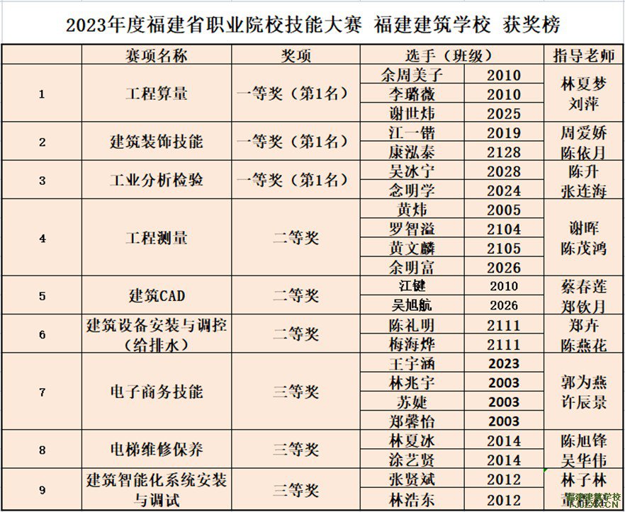 喜报!2023年度福建省职业院校技能大赛福建建筑学校3金3银3铜