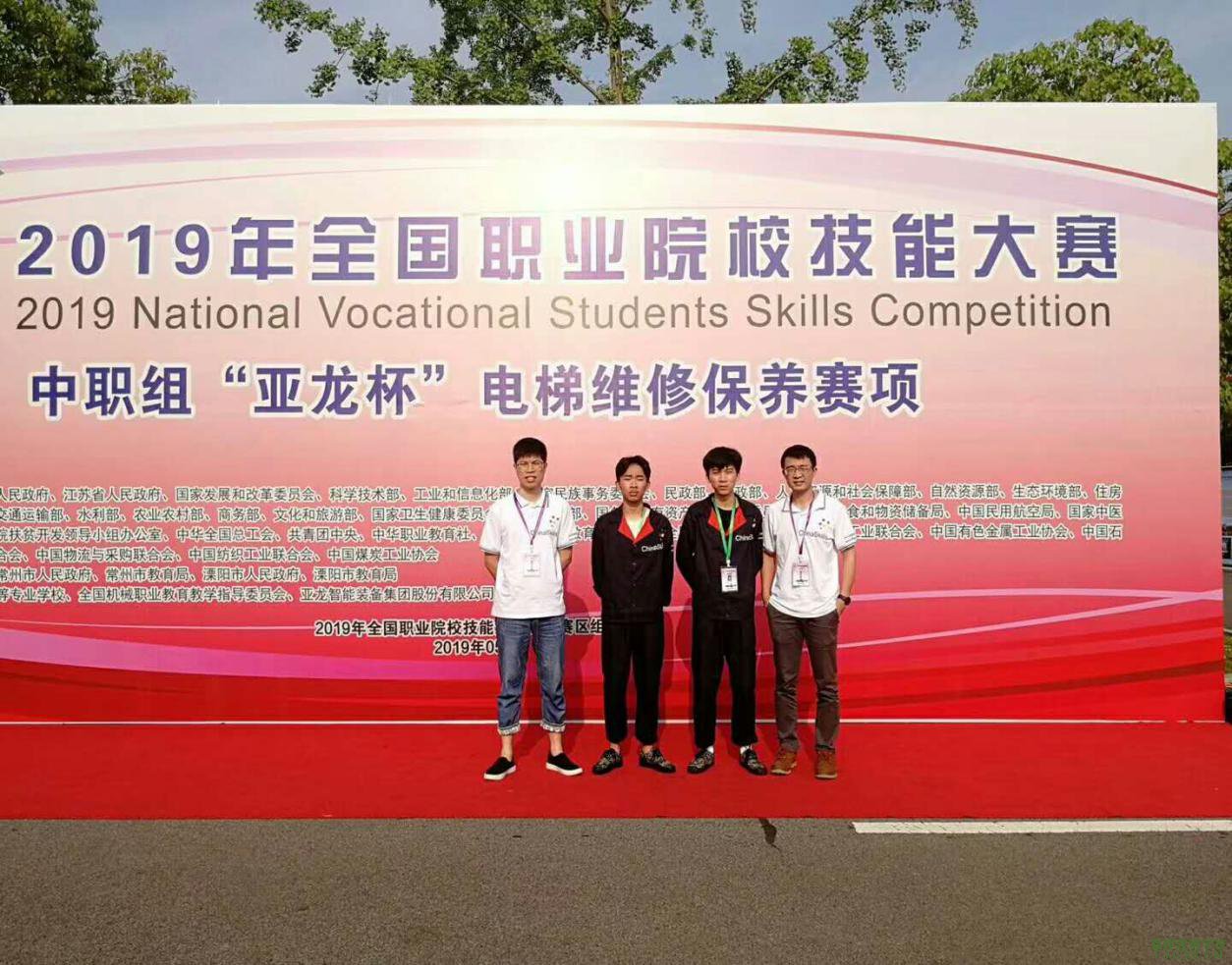 6月2日, 2019年全国职业院校技能大赛(中职组)“亚龙杯”电梯维修保养赛项在江苏溧阳举行,我校17级机电设备与安装专业学生胡俊荣、李炜健(指导教师:陈旭锋、林峰),经过努力拼搏,喜获国赛团体二等奖佳绩。