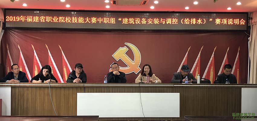 2019年福建省职业技能大赛“土木水利类”第二批项目“建筑设备安装与调控(给排水)”赛项于4月11日、12日在福建建筑学校赛点成功举行,来自全省的7支参赛代表队选手、领队、指导教师共33人参加。