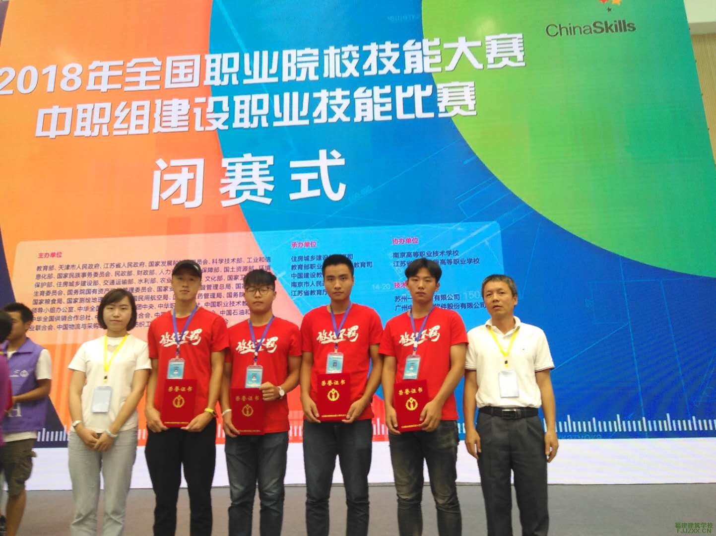2018年全国职业院校技能大赛“工程测量”赛项于6月8日~10日在南京高等职业技术学校举行,福建建筑学校15级建筑工程施工专业黄颖烨、詹杰、林光辉、苏细昌等四位同学作为“工程测量”国赛项目福建省代表队队员,经过努力拼搏,取得国赛三等奖的佳绩,在此对指导老师及获奖同学表示热烈的祝贺!
