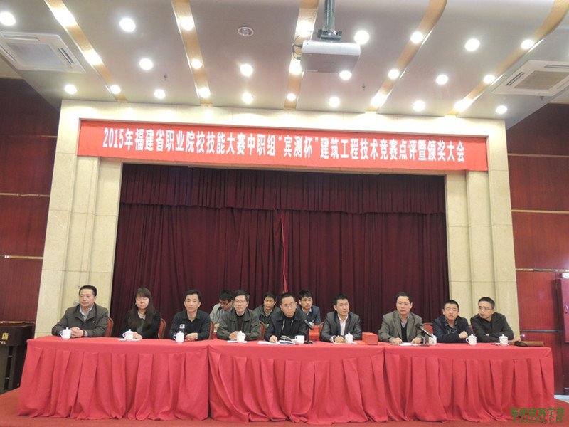 2015年福建省职业院校(建筑工程技术)技能大赛在福建建筑学校顺利落幕,闭幕式于3月29日上午9点在福州凤凰假日酒店举行。福建省职业技术教育中心陈新枫主持,技能大赛(建筑工程技术类)各个赛项评委组长、福建建筑学校林志副校长、以及校企合作企业福州宾测仪器有限公司、福建省锦楠建设发展有限公司、广联达软件股份有限公司、厦门裕禾深蓝电子科技有限公司等4家企业代表出席。全省九地市以及省属中职、省属技工的11支参赛代表队136名选手及其领队教师参加闭幕式。