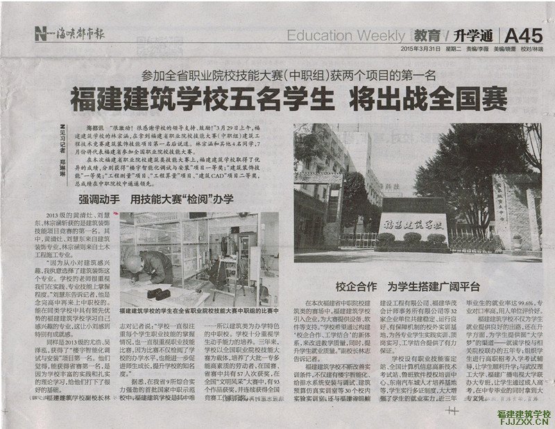 福建建筑学校五名学生将代表福建省参加全国赛