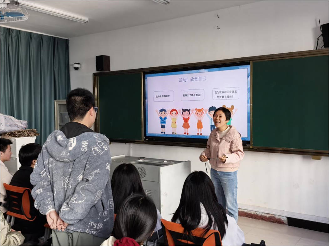 围绕“做最好的自己”这一主题,徐晨老师从“接纳自己”“欣赏自己”“做更好的自己”“激发潜能”四个维度展开深度讲解。她结合多个典型案例进行剖析,并通过丰富的师生互动环节,引导心理委员们学会正确认识自我、坦然接纳自我,同时深度发掘自身潜在的能力与价值。在徐晨老师的引导下,心理委员们不仅明确了全面、客观评价自我的科学方法,更深化了人格认知。