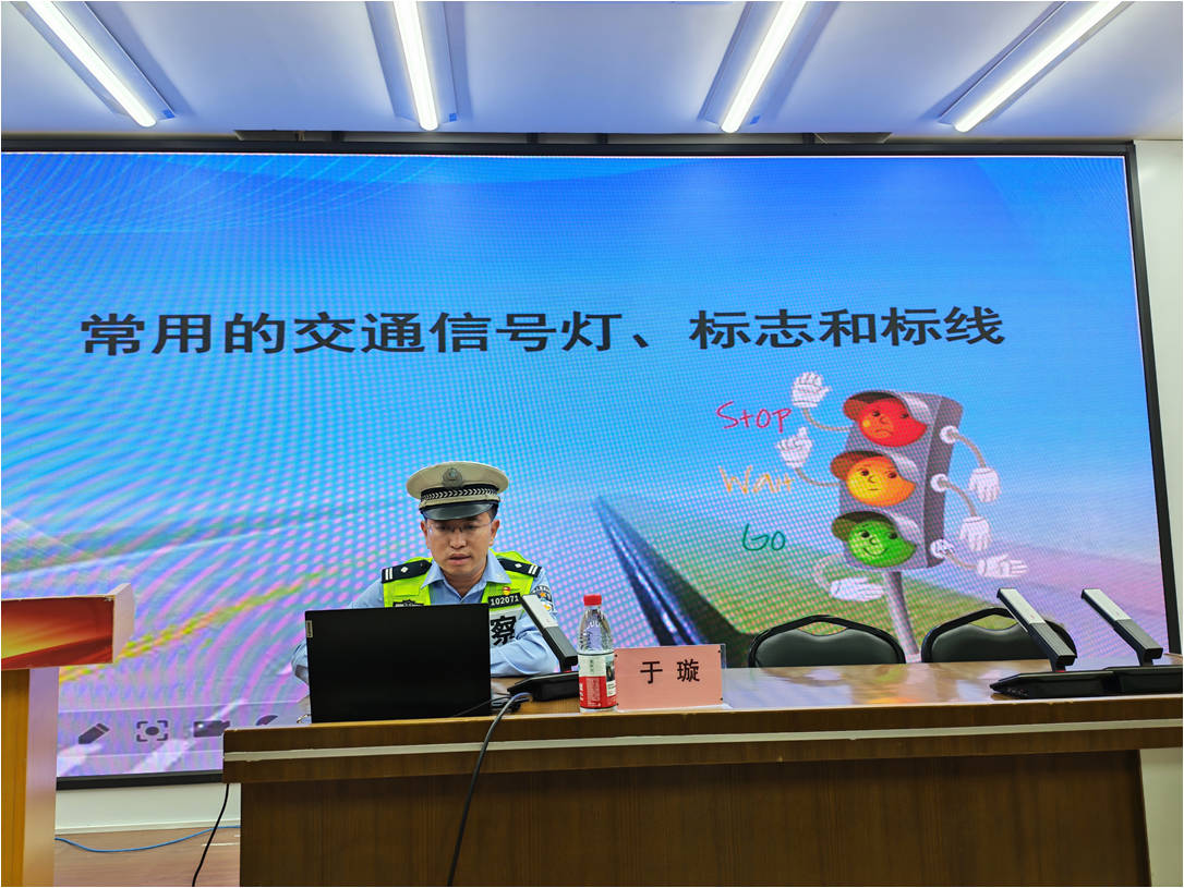 于璇警官结合校园周边交通情况与典型事故案例,深入解读交通法规,重点强调"一盔一带"要求,讲解规范过马路要领,指出骑行电动车的禁忌行为,并提醒杜绝走路、骑车时使用手机等分心行为。通过系统梳理学生出行隐患,辅以鲜活案例与专业分析,有效提升了在场人员的安全防范意识。