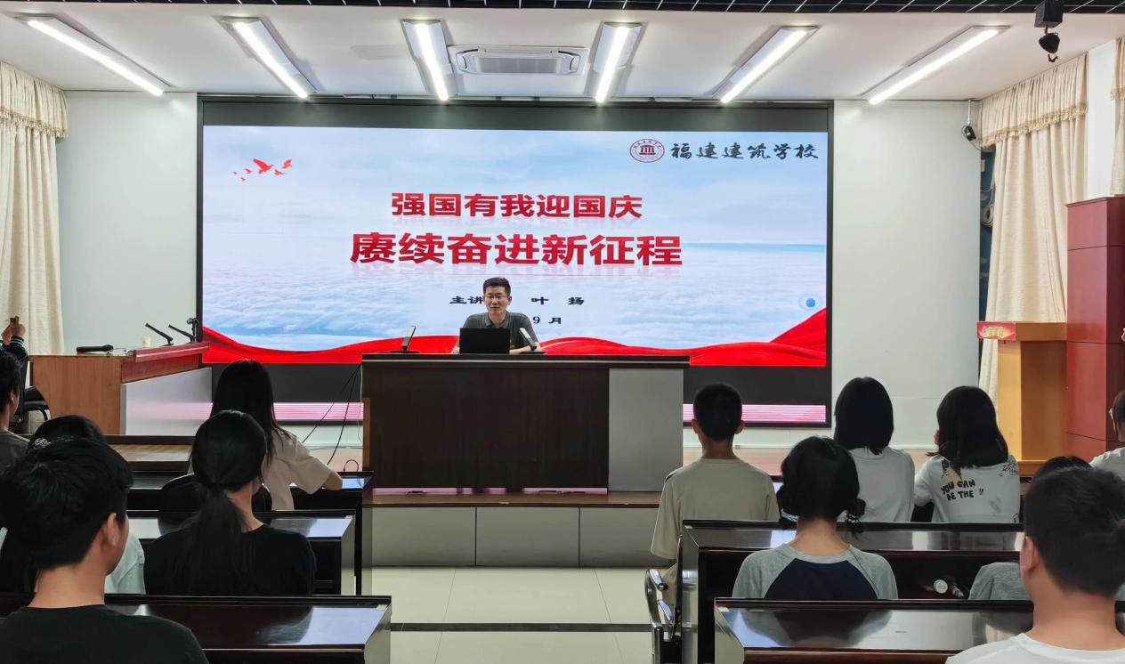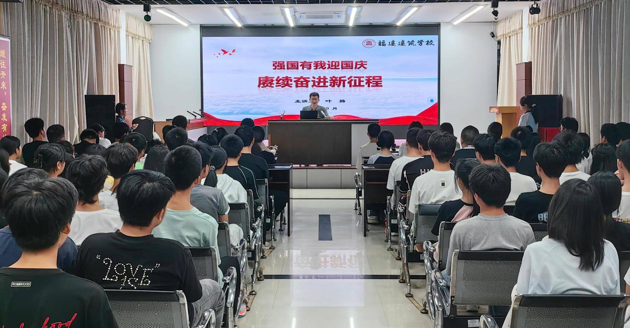 金秋丹桂溢香,家国情怀涌动,在中华人民共和国成立 76周年与中秋佳节双节将至之际,为贯彻落实职业教育立德树人根本任务,扎实推进学校“大思政”体系建设,福建建筑学校于9月28日开展“校长思政课”主题教育活动。校党委副书记、校长叶扬以“强国有我迎国庆,赓续奋进新征程”为主题,为近200名学生干部讲授了一堂有温度、有深度、有力量的思政课。