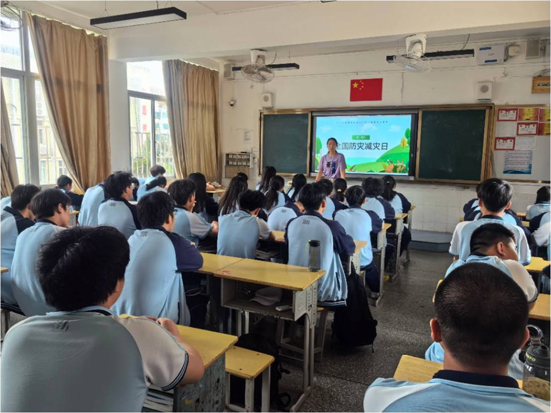 精准化教育深化安全认知体系。各班级召开防灾减灾主题班会课,围绕防灾减灾知识、应急避险技能等内容展开深入学习与讨论。5月12日升旗仪式上,学生科安全组黄爱爱老师进行国旗下宣讲,结合校园生活实际案例向全体师生普及防灾减灾知识,呼吁从自身做起,排查身边隐患,提升应急能力。