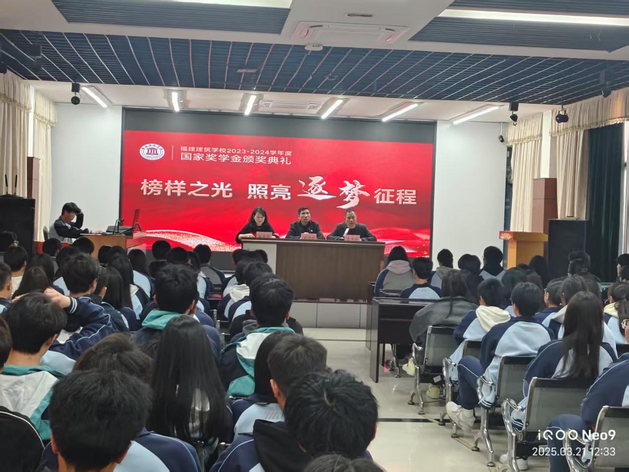 为全面落实立德树人根本任务,充分发挥国家奖学金获奖者的榜样引领作用,进一步宣传国家相关资助政策,激励建筑学子砥砺奋进、筑梦前行,3月17日,我校隆重举行了2023-2024学年中等职业学校国家奖学金颁奖仪式,校党委委员、副校长林修财及学生保卫科相关负责人出席此次颁奖仪式。