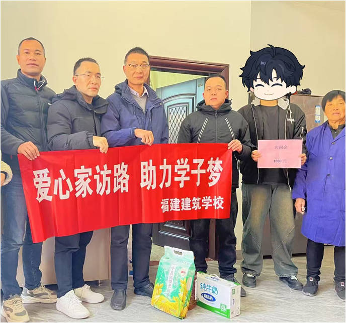 活动由校党委委员、副校长蔡文镇带队,学生保卫科副科长李亚彬,财经商贸教学部副主任郭为燕以及班主任池家吉老师和陈远弢老师等一行共同参与。他们分别前往永泰和福清等地的困难学生家中,为学生们送去了慰问金、慰问品以及诚挚的新年祝福。这份来自学校的温暖与关怀,让家庭经济困难学生和家长在寒冬中感受到来自学校的真诚关爱和浓浓暖意。