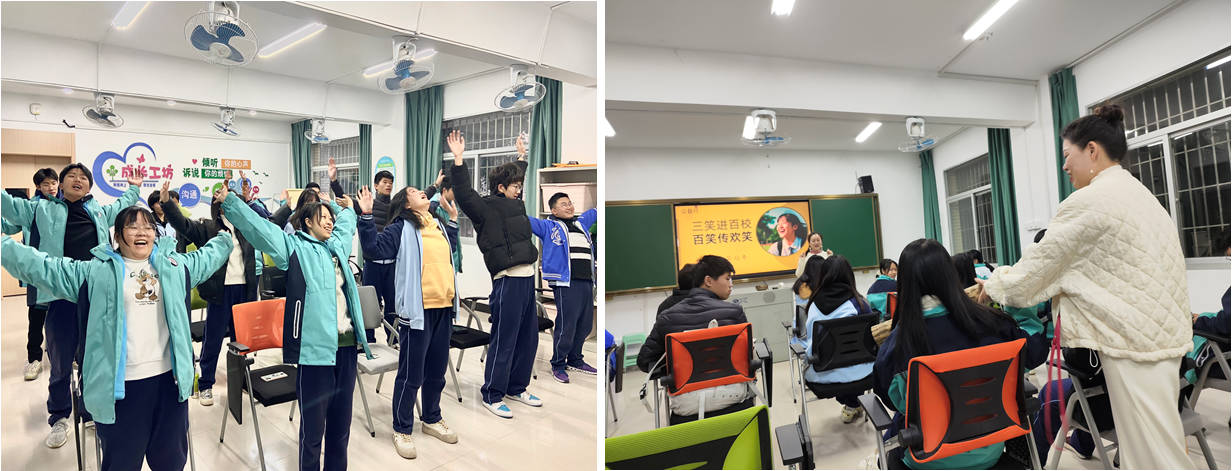 12月19日,我校心理健康教育中心的“成长工坊”内洋溢着欢声笑语,一场别开生面的“三笑进校园,百校传欢笑”公益行活动在此成功举办。活动有幸邀请了99级校友郑小虹,以及“喜乐三笑”的两位资深导师陈雪萍、陈丽金,共同为学生带来了一场精彩绝伦的心灵盛宴。我校心理健康教育发展中心林茜、徐晨老师组织24级心理健康委员现场参与本次活动。