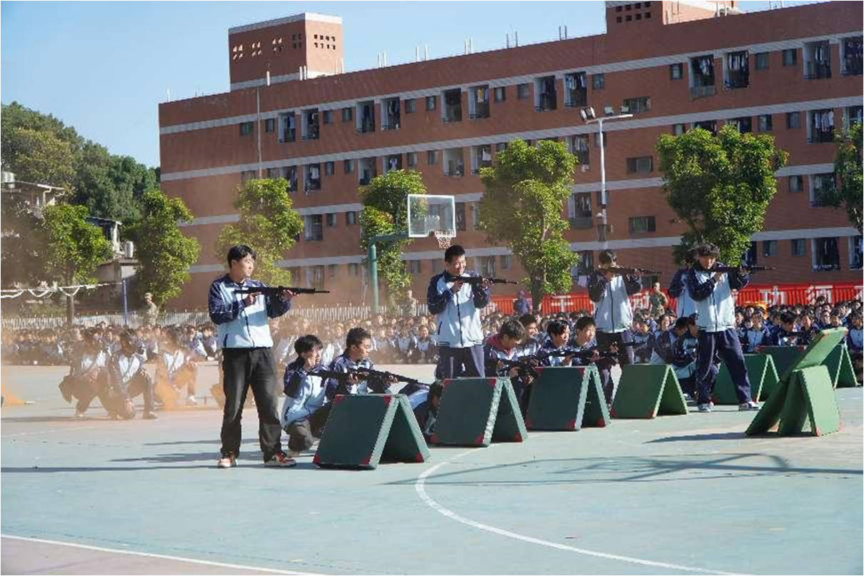 大会在庄严的国歌声中拉开帷幕,军训营长向叶扬校长报告完毕后,全场肃立,升国旗,奏国歌。随后,2024级的先进班级依次展示了精彩的走步队列、匕首操、军体拳、手语操《精忠报国》以及战术与急救表演。军姿潇洒展荣光,尽显吾辈壮志昂。同学们精神抖擞,步伐整齐,动作有力,眼神中透露出坚毅与斗志,充分展现了他们在军训中学到的技能和昂扬向上的精神风貌。