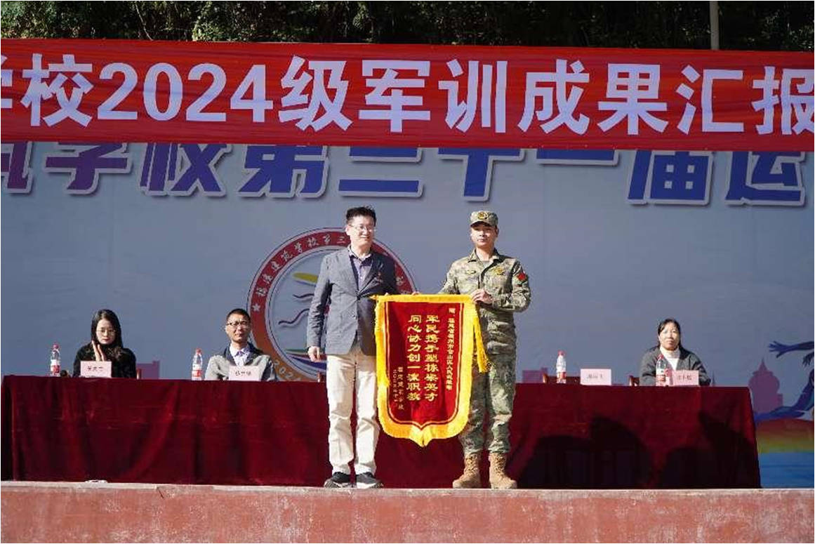 党委副书记、校长叶扬代表学校向仓山区人民武装部赠送了锦旗,以表达对军训教官们辛勤付出的诚挚感谢。