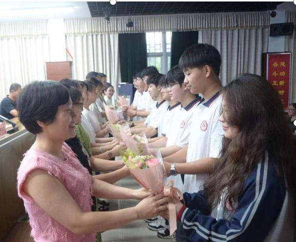 在“谢师恩”环节,毕业生们手持鲜花,依次走到班主任面前,向辛勤付出的老师们献上最真挚的感谢与敬意。鲜花传递着学生们的感激与祝福,也象征着师生之间的深厚情谊。祝愿学生在未来的道路上越走越远,实现自己的梦想。同时,也祝愿学校越办越好,培养出更多优秀的人才。