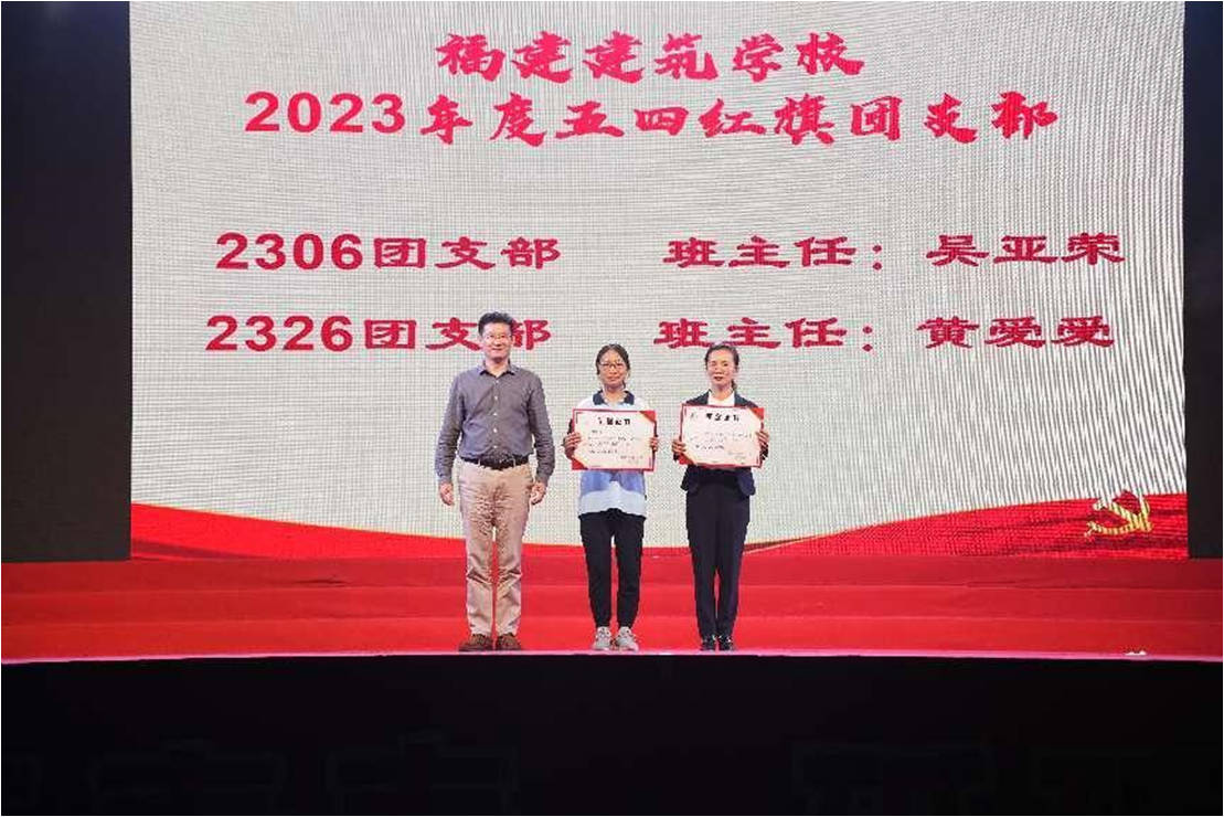 叶扬校长为获得2023年度校级五四红旗团支部的班级颁奖。