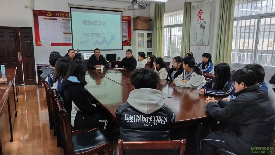 2月28日下午,福建建筑学校在学生科会议室举行2024年学生干部大会,副校长蔡文镇、培训中心副主任李亚彬、校团委干事周麒森以及学生各部门负责人参会。