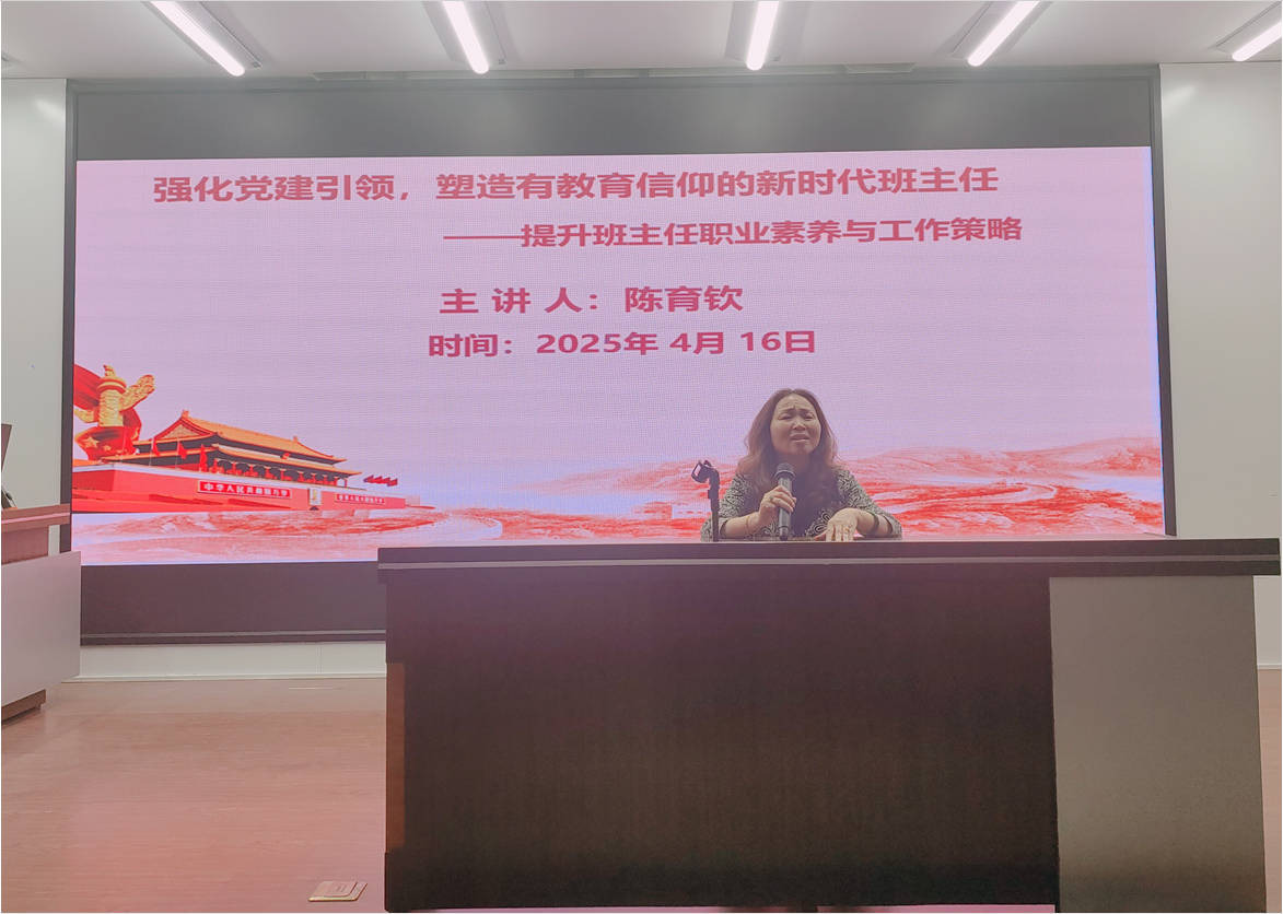 陈育钦教授以“强化党建引领,塑造有教育信仰的新时代班主任”为主题,结合习近平总书记对职业教育“培养大国工匠、支撑中国制造”的重要批示,强调班主任要立足“两个大局”,既要关注学生学业提升,更要着眼学生生涯规划,通过资源整合搭建“学校-企业-社会”育人平台。针对教师队伍建设,她系统解读“四有”好老师标准,为班主任德育工作指明方向。