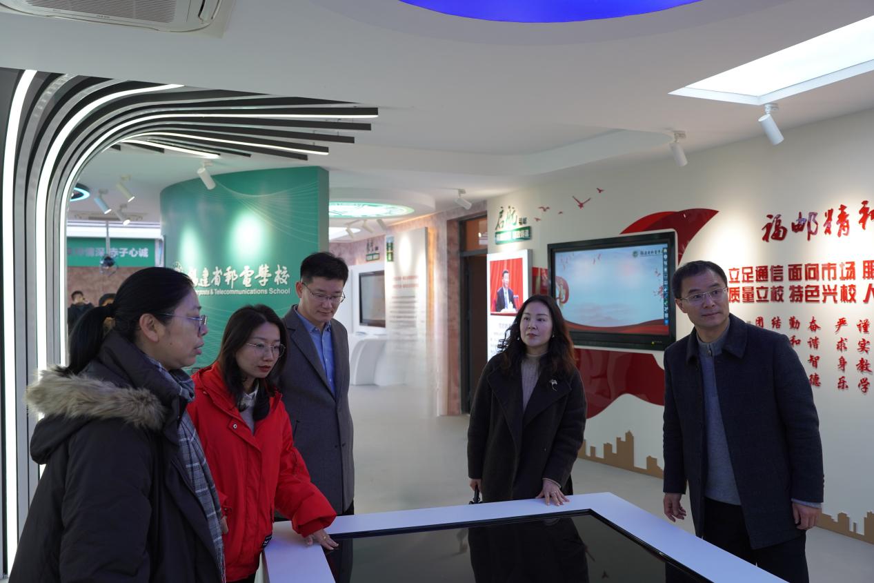 在福建邮电学校党委书记包晓晖,党委副书记、校长苏嵘的陪同下,我校人员先后走访了校园文化广场、学生发展中心、学生宿舍、食堂、禁毒宣教室、廉洁文化长廊以及新校史馆。