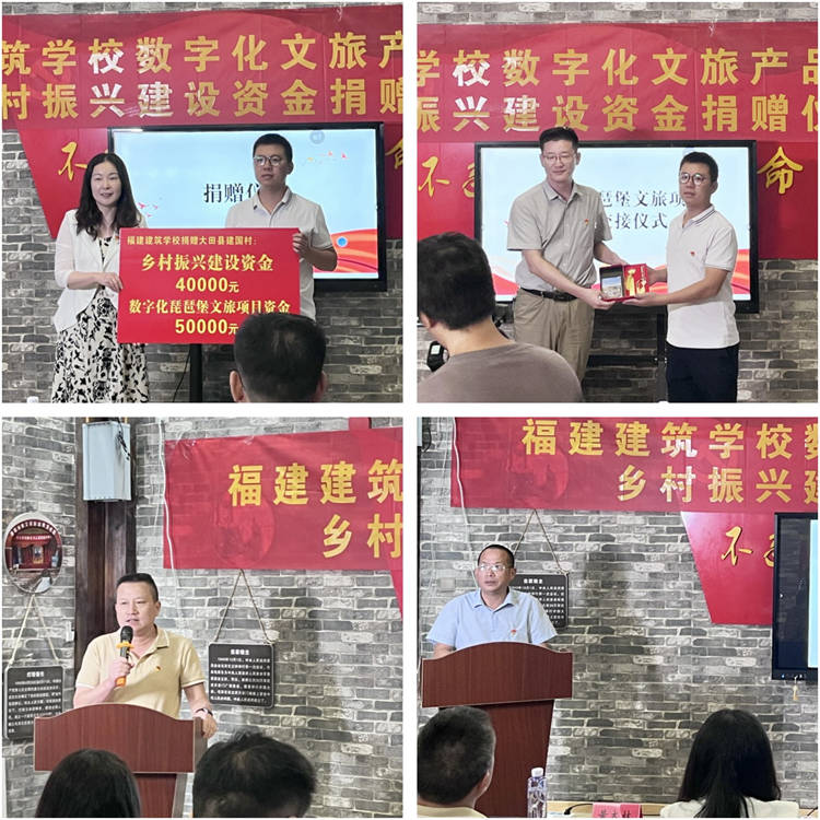 捐赠仪式上,大田县政府党组成员黄木林致辞,他对我校教师代表的到来表示欢迎,对我校长期以来的大力支持表示感谢,同时希望双方不断加强联系,持续深化落实新时代乡村振兴工作,确保校村交流合作务实有效,打造对口帮扶、联手发展的典范。我校党委副书记、校长叶扬代表学校进行了数字化琵琶堡文旅项目产品的交接,建筑专业教学部林玉章主任对项目产品进行了详细介绍。