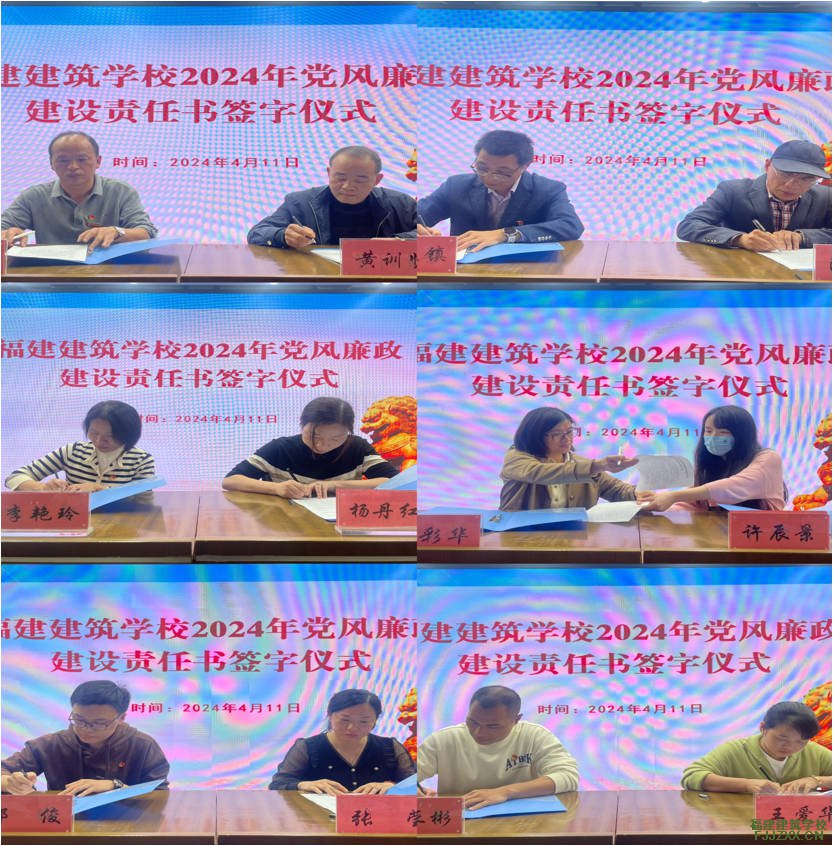 会上,校党委书记与其他班子成员、班子成员与分管科室负责人签订《2024年党风廉政建设责任书》;中层干部与科室重点领域、关键环节经办人员签订《2024年廉政风险防控责任书》。