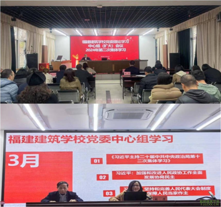 3月14日下午,我校党委召开理论学习中心组(扩大)会议2024年第二次集体学习研讨会。学校党委领导班子成员、各党支部书记、校青年理论学习组成员参加了会议。会议由校党委工作科主任丘永发主持。